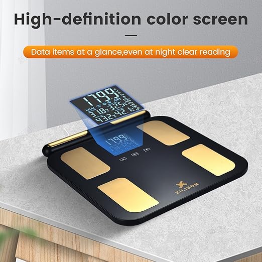 - 8-ELECTRODE FULL-BODY ANALYSIS WITH BIA TECHNOLOGY: Utilize advanced 8-electrode bioelectrical impedance analysis (BIA) to measure fat, muscle mass, and water distribution across arms, legs, core, and torso. High-precision sensors and a dual-core CPU ensure accuracy for 23 metrics, including BMI, visceral fat, and bone density, ideal for tracking fitness progress