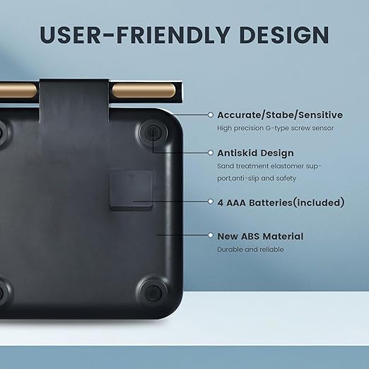 - DURABLE & SAFE DESIGN FOR HOME USE: Built with tempered glass and reinforced ABS materials, supporting weights up to 396LBS (180kg). Anti-slip rubber pads ensure stability, while the sleek, compact design fits seamlessly into bathrooms or gyms