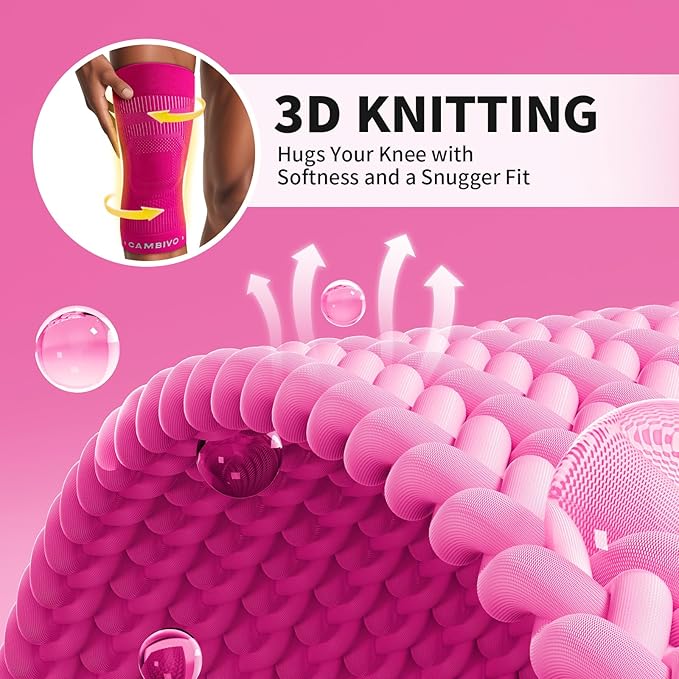 CAMBIVO Elite Motion Series Knee Brace for Women and Men (2 Pack), Ultra-Thin Lightweight Knee Compression Sleeve with Reflective Design for Pain Relief, Running, Workouts, Daily Use (Hot Pink, Large)