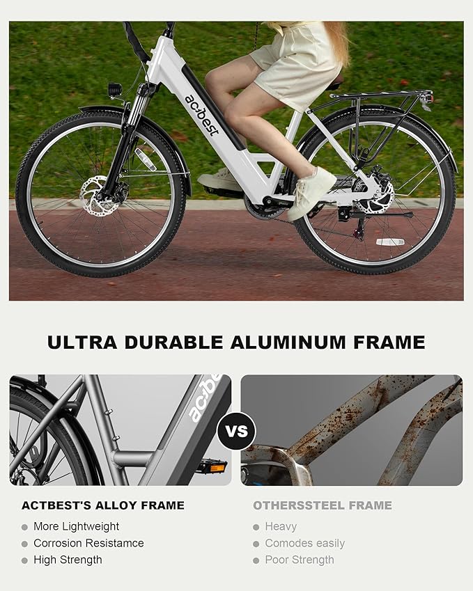 - 【Strong 1200W Motor for Any Terrain】Actbest Cores electric bike features a powerful Peak 1200W motor, reaching speeds up to 28MPH. With 60N.M torque, it conquers 30° inclines effortlessly, providing smooth performance on rugged or steep terrain. Whether for commutes or extreme trails, this e-bike delivers power and precision