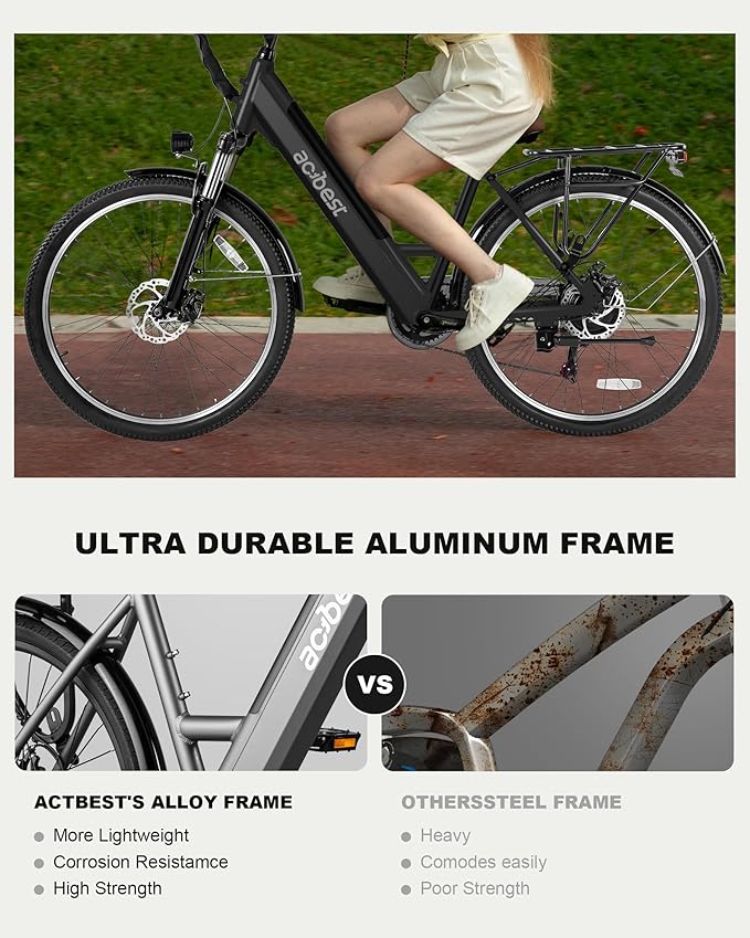 - 【Strong 1200W Motor for Any Terrain】Actbest Cores electric bike features a powerful Peak 1200W motor, reaching speeds up to 28MPH. With 60N.M torque, it conquers 30° inclines effortlessly, providing smooth performance on rugged or steep terrain. Whether for commutes or extreme trails, this e-bike delivers power and precision