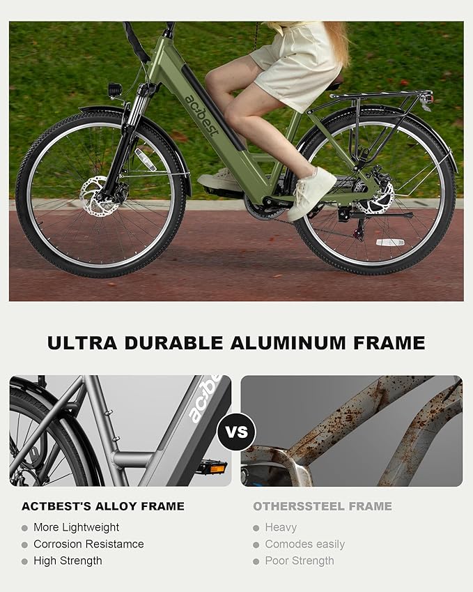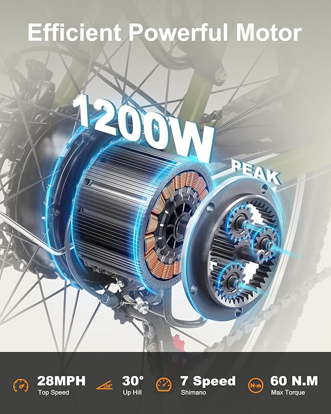 - 【Strong 1200W Motor for Any Terrain】Actbest Cores electric bike features a powerful Peak 1200W motor, reaching speeds up to 28MPH. With 60N.M torque, it conquers 30° inclines effortlessly, providing smooth performance on rugged or steep terrain. Whether for commutes or extreme trails, this e-bike delivers power and precision