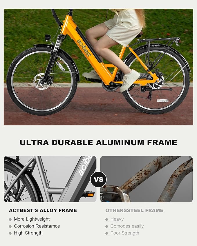- 【Strong 1200W Motor for Any Terrain】Actbest Cores electric bike features a powerful Peak 1200W motor, reaching speeds up to 28MPH. With 60N.M torque, it conquers 30° inclines effortlessly, providing smooth performance on rugged or steep terrain. Whether for commutes or extreme trails, this e-bike delivers power and precision