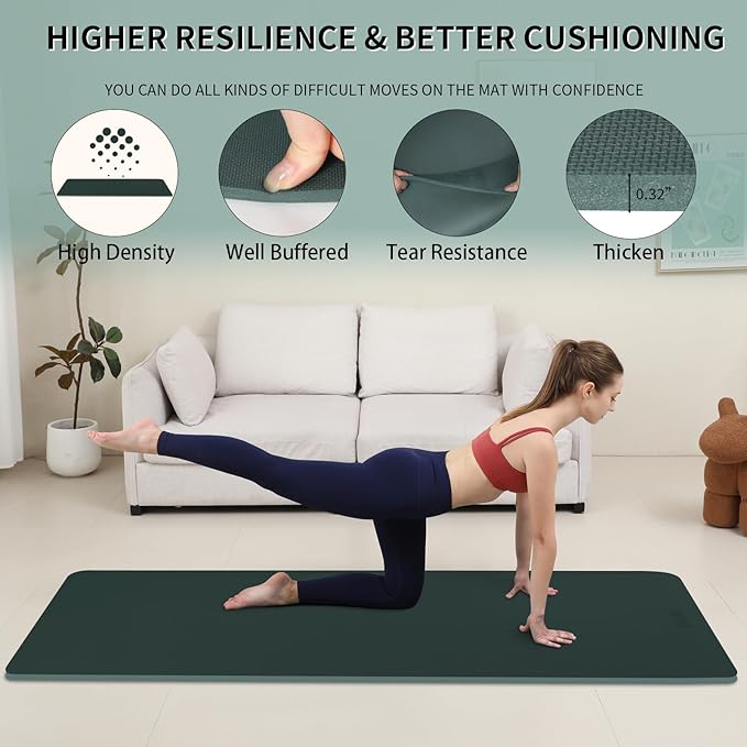 - 【Premium Thick Yoga Mat for Enhanced Comfort】Experience superior cushioning with our 8mm (1/3") thick yoga mat, designed to protect joints during intense workouts. Ideal as a gym mat or Pilates pad, its rebound-enhanced surface provides optimal support for yoga, HIIT, and floor exercises