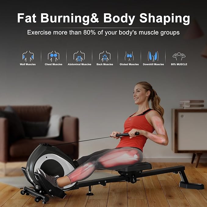 - Full-Body Fat Burning & Toning: Engage over 80% of your muscle groups with each row, combining cardio and strength training to burn fat effectively and sculpt a leaner, more toned physique. This comprehensive workout capability makes it a top choice among rowing machines for home foldable options.