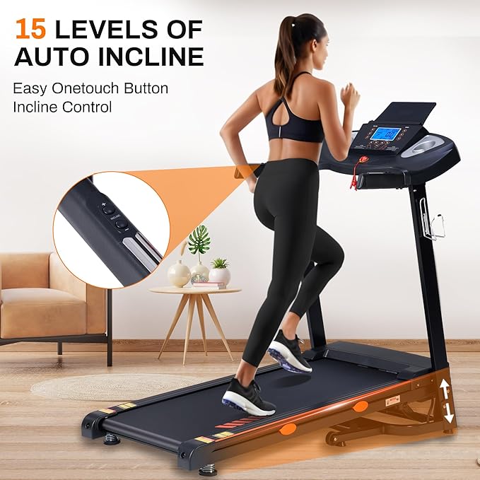 - 【15 Level Auto Incline Treadmill】Auto-incline design that mimics changes in real-world terrain. Sculpt your muscles and endurance while the 0.5-10 MPH speed range caters to varying aerobic intensities.