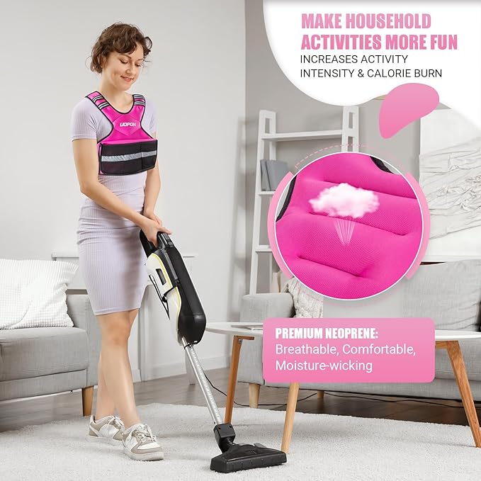 - NEW UPGRADED RUNNING VEST: The adjustable weighted vest for women featuring an X-shaped design tailored to hug the curves of the female body, ensuring a comfortable fit. Weighted vest With enlarged mesh pockets, easily store large-sized phones during workouts, while separate compartments hold your essentials like credit cards, keys, and tissues. Enhanced with high-visibility reflective strips on the front, shoulders, and back, ensuring you are easily seen for added safety during training.