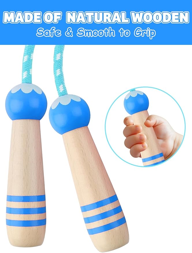 - 【KIDS JUMP ROPE】You will get 1 pcs 8.5ft/2.6m length children's skipping ropes with wooden handle(Blue), which boys and girls like. Fun activity games can play with friends or family.
