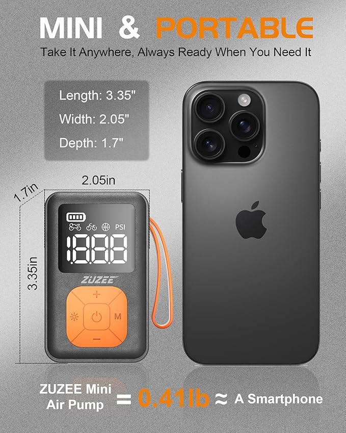 - Pocket-Sized Powerhouse - ZUZEE portable bike pump redefines compact: 3.35"x2.05"x1.7" at just 6.5oz - 30% smaller than standard CO2 inflators. Throw it in your jersey pocket, clip to your hydration pack, or stash in a saddlebag. The ultimate grab-and-go inflation partner for century rides, bikepacking adventures, or emergency trailside fixes.