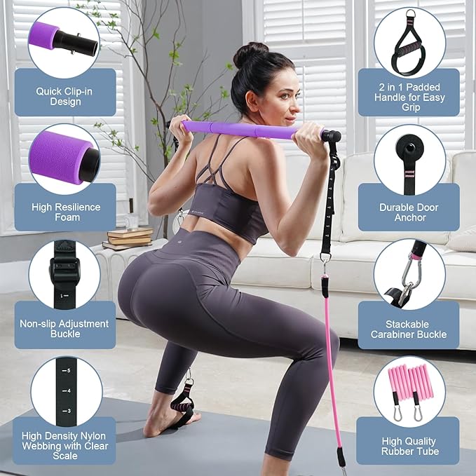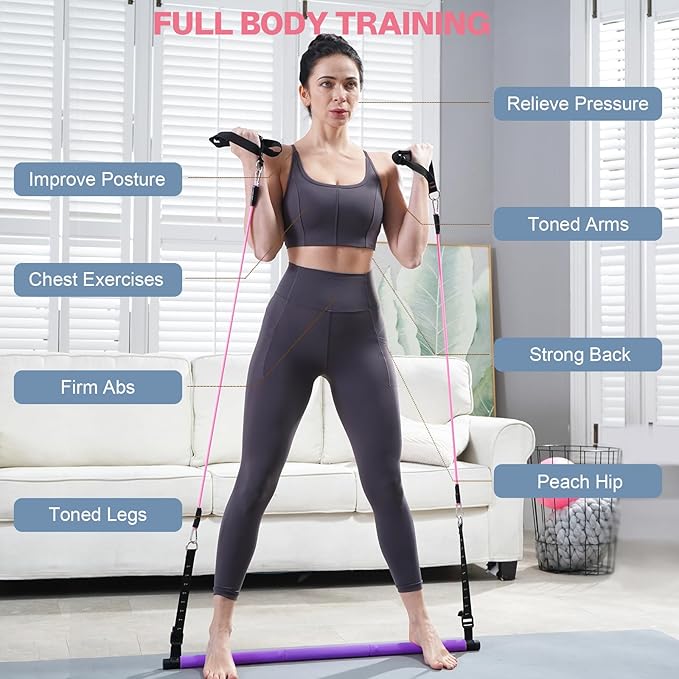 - šššÆšš§ššš ššØš š šš¢š„šššš¬ ššš« šš¢š - Crafted with three detachable steel pipes and high-density non-slip protection pad, anti-slip and sweat-proof, our Pilates stick bar will enable you a steady and safe exercising. It can be disassembled easily so you can take it with you anywhere. The two ends of the bar are equipped with heavy duty adjustable resistance bands, two kinds of resistance can be matched with different intensities.