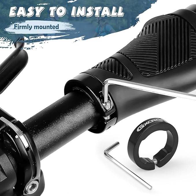 GXCROR Ergonomic Bike Handlebar Grips, Double Lock, Non-Slip Rubber, Universal 22.2mm, for MTB E-Bike