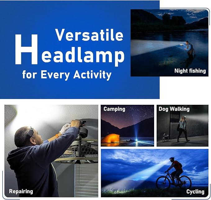 - 230° Wide Beam & Ultra-Bright Illumination: Experience the brilliance of our LED headlamp, offering a 230° wide beam with powerful light coverage up to 70 meters. Perfect for night running, fishing, cycling, camping, and hiking, this headlamp transforms darkness into daylight, making your entire space come to life.