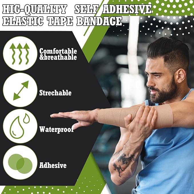 - Material: made from a high twist, elastic fabric with a rubber based adhesive, porous backing minimizes skin irritation, a porous, adhesive, elastic, beige colored tape that allows the skin to breathe; Stretches around uneven surfaces, easy to use and replace, you can carry them around conveniently