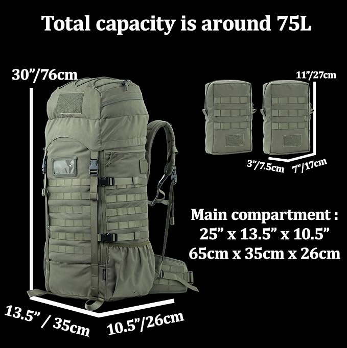 75L Tactical Backpack with Internal Frame, MOLLE, and Hydration System