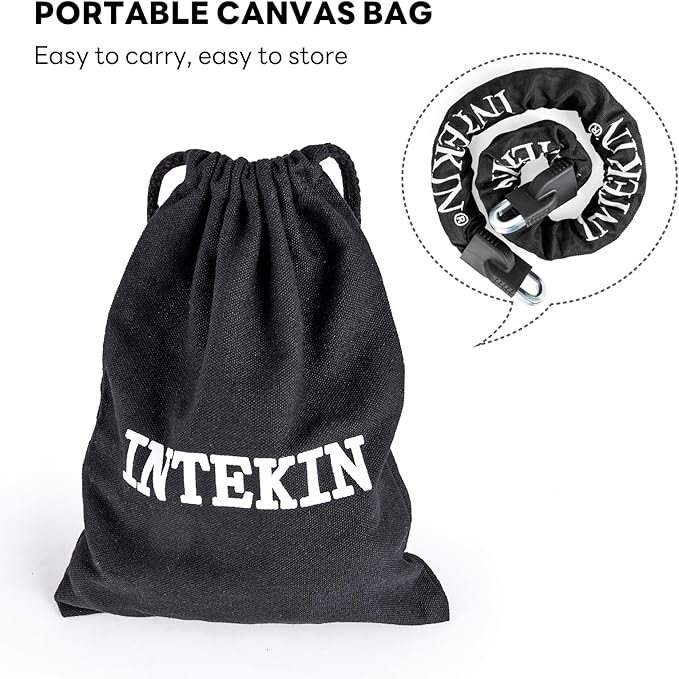 - VERSATILE SECURITY APPLICATIONS: INTEKIN hardened steel security chain (4ft length, 5.64lb weight) is ideal for securing: bicycles, motorcycles, trailers, RV campers, gates, fences, storage cabinets, and both commercial and residential properties