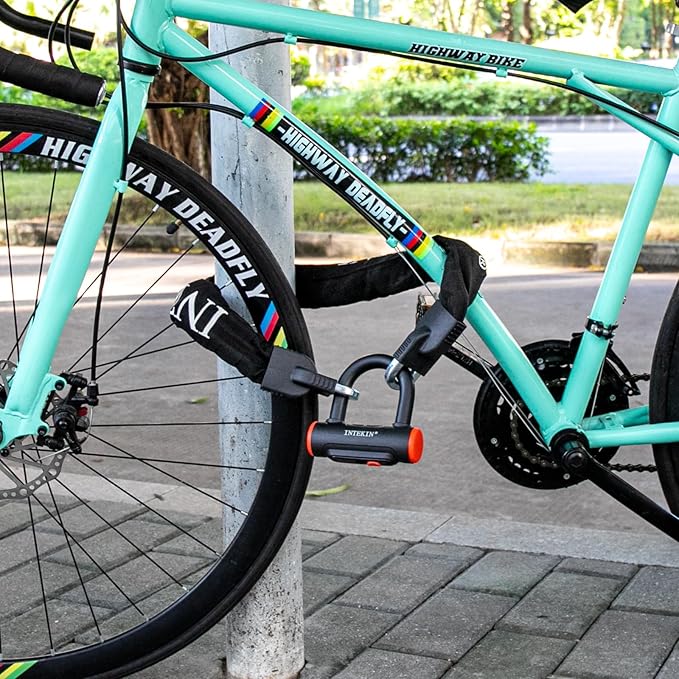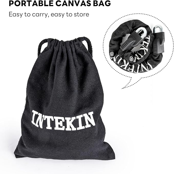 - VERSATILE SECURITY APPLICATIONS: INTEKIN hardened steel security chain (3.3ft length, 4.59lb weight) is ideal for securing: bicycles, motorcycles, trailers, RV campers, gates, fences, storage cabinets, and both commercial and residential properties