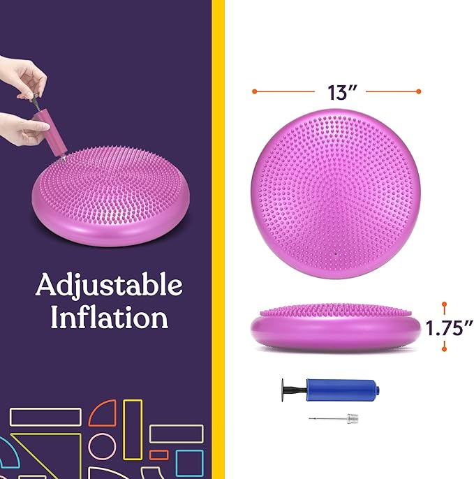 Special Supplies Stability Cushion Balance Pad for Core Strength Trainer and Flexibility, Tactile Sensory Disc for Standing or Sitting, Soft Molded Spike Surface, Includes Air Pump (Purple)