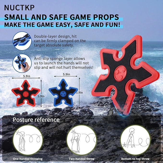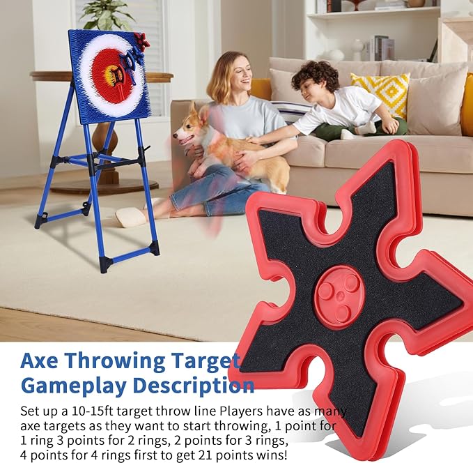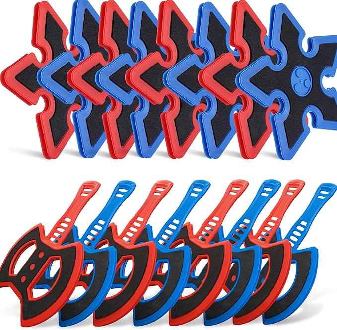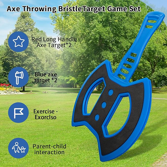 - EXCELLENT AXE THROWING GAME: Classic color scheme, 8 red long handled axe targets, 8 blue long handled axe targets, long handles are designed to be the perfect throwing tools. Invite your friends or family to have a multiplayer interactive throwing game on the patio or outdoors, you will experience the exciting throwing fun