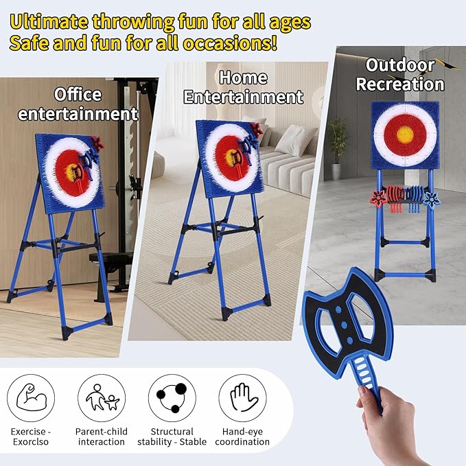 - AXE THROWING TRAINING: Provides challenging and realistic game experience for axe throwing enthusiasts, perfect for competitive games or personal practice. It helps to actively exercise and practice hand-eye coordination and reduce study stress; it is an excellent stress reliever game for adults and a must-have fun toy for work, rest and recreation