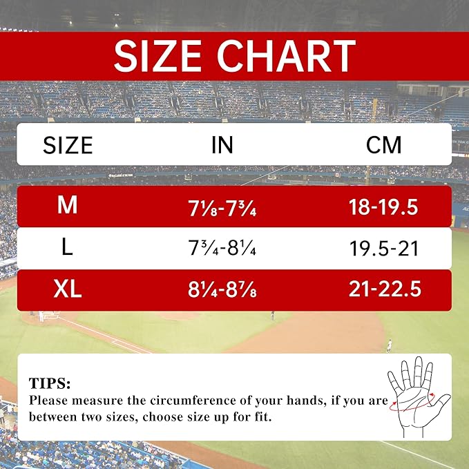 - Superior Grip and Control: These mens baseball batting gloves are equipped with an anti-slip silicone palm coating, providing a superior grip that lasts. The anti-slip silicone fingerprint on the fingers further enhances the grip, ensuring optimal control during swing. (Note: Not anti-slip when wet)