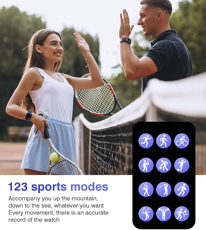 Smart Watches for Men Women with Blood Pressure Monitor, 1.9'' HD Full Touch Screen Fitness Tracker, 123 Sports Modes, Waterproof Smartwatch with Heart Rate, Blood Oxygen Compatible Android and iOS