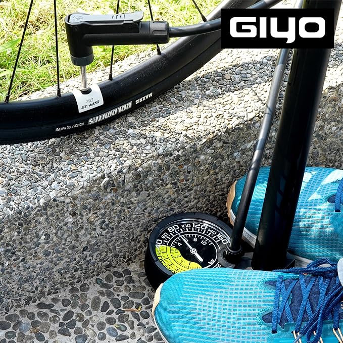 GIYO Bike Floor Pump - 3" Dual Scale Gauge - Road & MTB | One Handed Operation -Clever Valve for Presta & Schrader | Max 160PSI Steel Barrel (GF27)