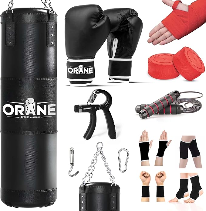 ORANE Punching Bag for Adults, 4FT PU Heavy Boxing Bag Set, Punching Bag with 12OZ Boxing Gloves, Chains, Hand Wraps, Best for MMA, Karate, Kickboxing, Martial Arts, Home Gym Training – Unfilled