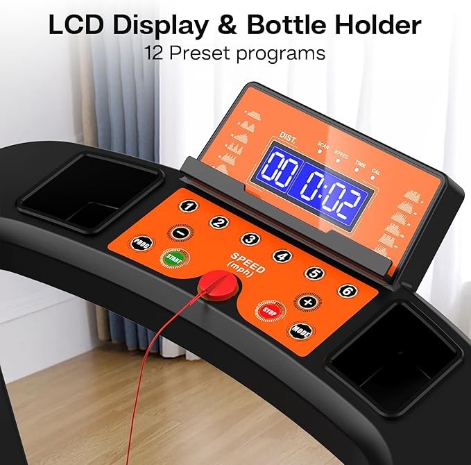 - 【Easy to Operate LCD Display】Seniors/convalescents can clearly keep track of all their progress with backlit screens that measure distance walked, calories burned, heart rate, speed, and more. They can also easily operate our recovery exercise treadmill with simple buttons and no bells and whistles. If there are young people at home who are willing to use it, the home gym treadmill also has 12 preset modes to choose. Phone & water cup holder are also designed.