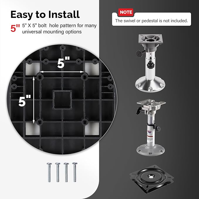 - 【Easy to Install】-We provide detailed illustrated instructions to allow you to quickly complete the assembly. What's more, the 5" x 5" bolt hole pattern allows you to easily mount the seat to any standard 4-bolt swivel or base (base not included).