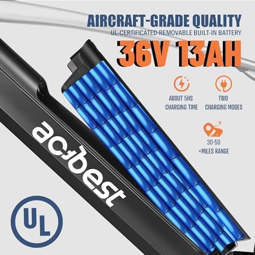 - 36V 13AH Removable Built-in Battery - The UL2849-certificated battery is easy to remove for charging and has a waterproof, shockproof and anti-theft design, which is safer and lasts much longer. The battery only takes 4-6 hours to fully charge, giving you a range of up to 35 miles (throttle)/50 miles (PAS) on a single charge.