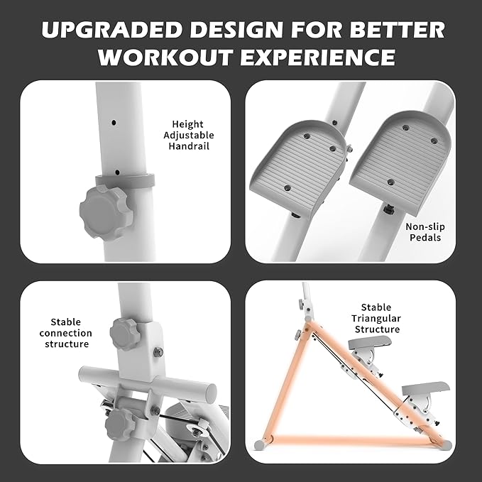- Foldable & Space Saving: Folding size is 16.5*7.9*37.4 inches, you can easily tuck the stair climber under your bed or in the corner to save space. Perfect for home gyms or small living areas, it allows you to enjoy effective workouts wherever you are.