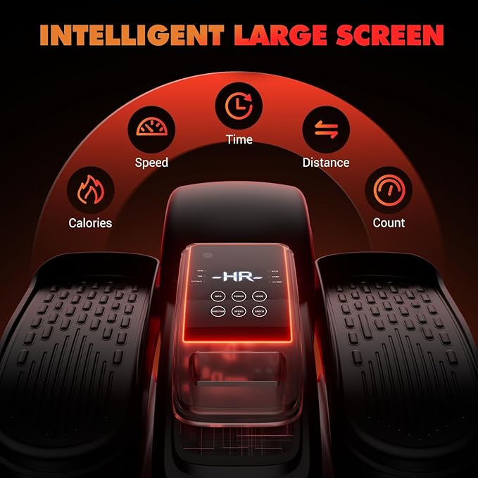 - 【HR & Auto Mode】Exercise anytime, anywhere. In HR(Manual) mode, you can adjust workout time(15-30min), speed(1-10) and direction (forward&reverse) by remote control or button of the elliptical machine. Then switch "mode" to Auto mode that the speed and direction have been programmed. In auto mode, you can adjust P1-P10 mode by press mode button, the speed of the mini seated elliptical changes every minute, and the direction changes every 3 minutes