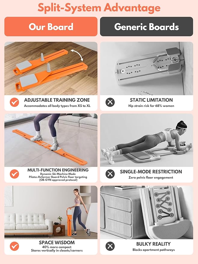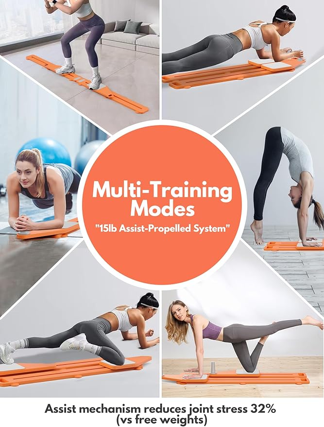 - Joint-Safe Pilates Board for Home Training: 15lb assisted recoil tech protects postpartum women's pelvic floors. Pro-grade steel frame (265lb capacity) with anti-slip floor pads ensures apartment-safe ≤25dB workouts