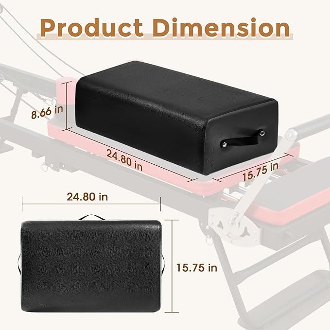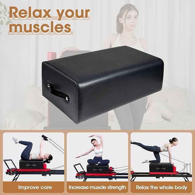 - 【Exquisite Size Design】This Pilates box measures 24.8×15.75×8.66 inches,suitable for exercisers of different body shapes,and can be matched with Pilates reformers of various sizes.Its design concept is to ensure that users enjoy the ultimate comfort during exercise,allowing you to fully shape your body lines,enhance muscle strength,and shape a beautiful figure in Pilates exercise