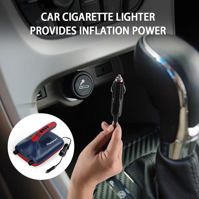 - Car Power Supply: The 3.4m vehicle electric pump cord and plug are connected to the car cigarette lighter. Powered by the car, frees your hands and easy to inflate. Our paddle board pump is the choice of most people.