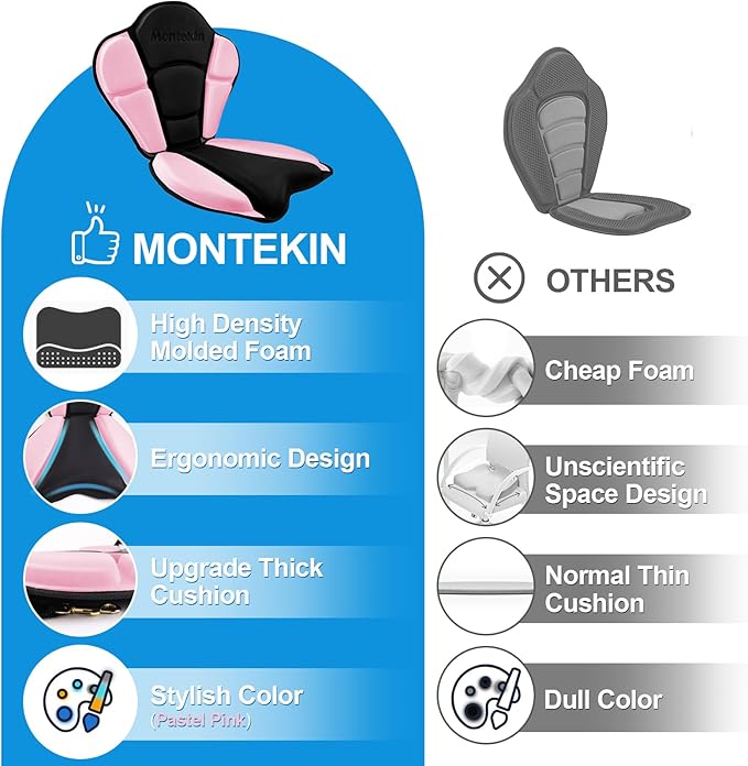 - [Wide Applicability] Montekin fishing seat can be used with a variety of water sports boats, such as kayak, inflatable kayak, fishing boat, canoe, etc. It can also be used on SUP equipped with D-Ring, allowing you to have a comfortable support while enjoying the fun of outdoor sports.
