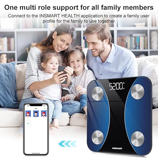 INSMART Smart Scale for Body Weight, Digital Bathroom Scale with BMI, Muscle Mass, Bluetooth Body Fat Scale,17 Body Composition Analyzer with Smart APP Sync Weight Scale, 400 lbs- Blue