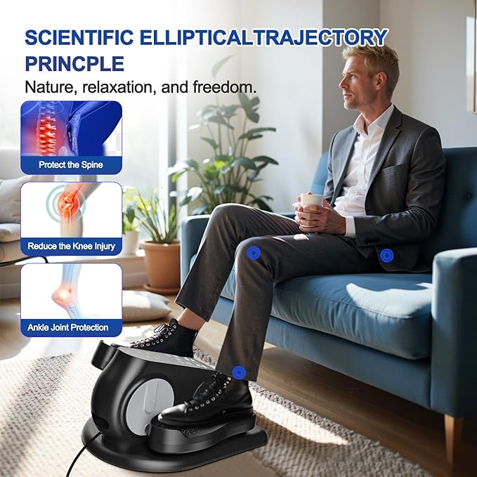 - 【LOW-IMPACT& 0 PRESSURE 】Low-Intensity Exercise under the desk elliptical is especially suitable for the elderly and people who have leg rehabilitation. Low-intensity exercise can burn calories, improve cardiovascular health and strengthen muscles, and at the same time help the legs adapt and recover quickly.