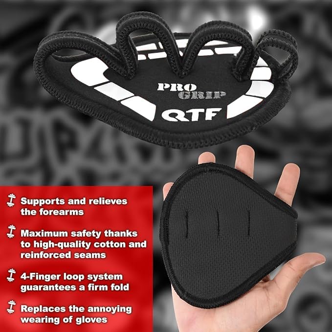 - Elevate your training experience with the QTF Grip Pads, designed for increased grip and anti-slip protection. Whether you’re doing pull-ups, rowing, or any other pull exercises, these pads ensure a secure grip, eliminating sweaty or slippery hands, and allowing you to focus on maximizing your workout. Perfect for strength sports like Calisthenics, bodybuilding, Freeletics, or Crossfit.