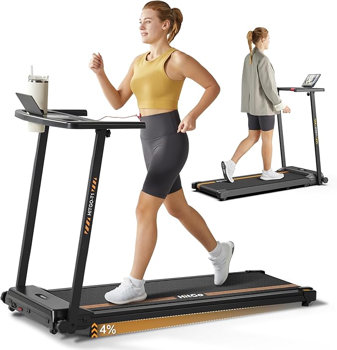 Treadmill with Incline, 2.5 HP Folding Treadmills for Home with 300 lbs Capacity, Portable Walking Pad Treadmill with Desk Work Station, App, Cup & Phone Holder
