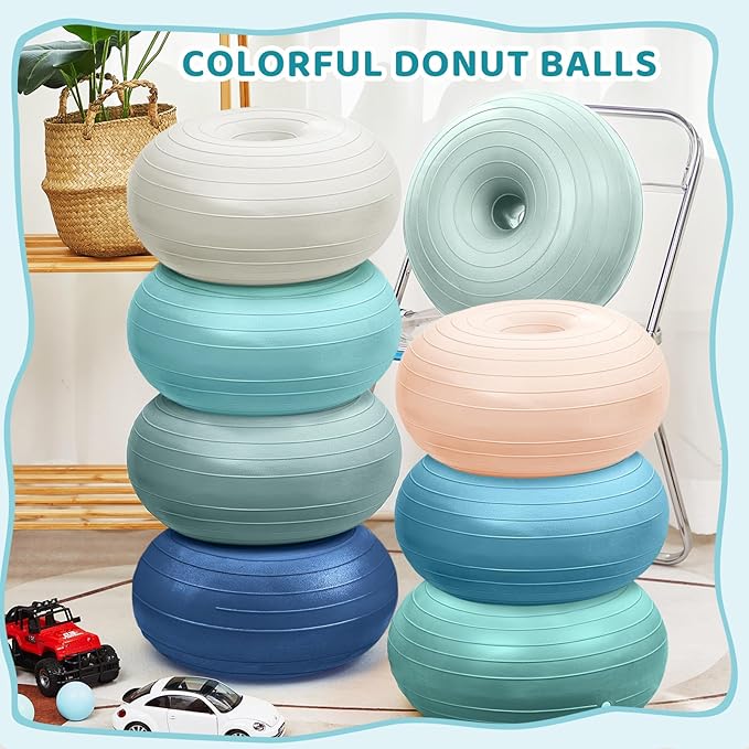 Lewtemi 8 Pcs Flexible Seating for Classroom Elementary 20'' Yoga Ball Chair Large Inflatable Donut Exercise Ball Chair Wobble Seat with Inflator for Kids Student Balance