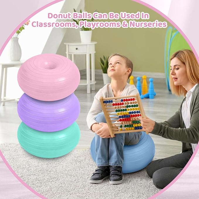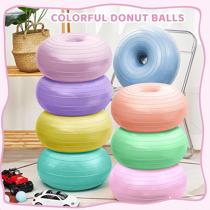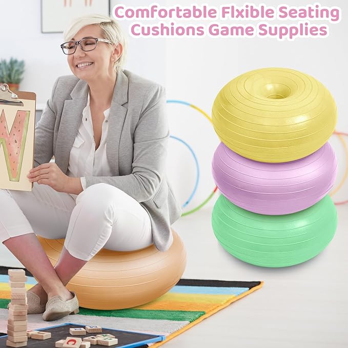 - What You Receive: you can get 8 pcs flexible seating designed with donut shape and 8 colors, light purple, pink, light pink, light orange, light blue, lake green, light green, light yellow, each about. 20 x 20 x 8.8 inches, 1 pcs inflator, inflatable can provide kids with even a correct sitting experience, can provide effective cushioning for children and protect their hips
