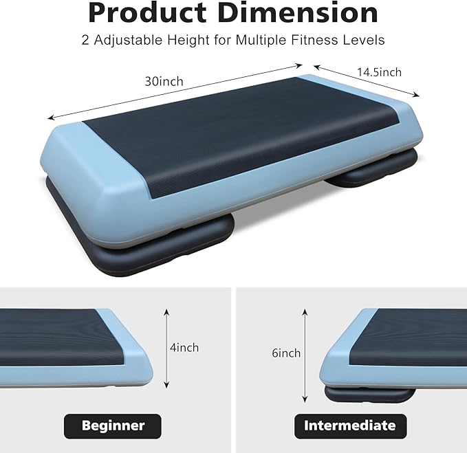 - Adjustable Heights: The stepping platform for exercise consists of a non-slip platform with support blocks that can adjust the height from 4 to 6 inches depending on the intensity of the workout. The exercise stepper is a widely used aerobic fitness system, perfect for beginners and advanced athletes looking to work out at home.