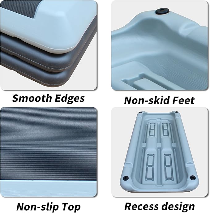 - Non-slip Design: The textured surface is non-slip and shock-absorbing, which means you can stay stable through each set of steps. Each riser is also fitted with a non-slip rubber foot to prevent it from sliding when moving and scraping the floor.