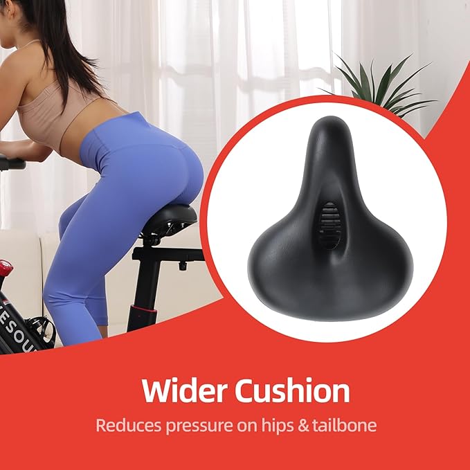 - Stable Structure with adjustable handlebar and seat: The stationary bike for home features a 2-way adjustable handlebar and 4-way adjustable bike seat. Its durable stainless steel dual-triangle frame ensures stability and supports up to 300 pounds. Equipped with a wider seat, offering a secure and comfortable ride for all kinds of users,which fits all families fitness.