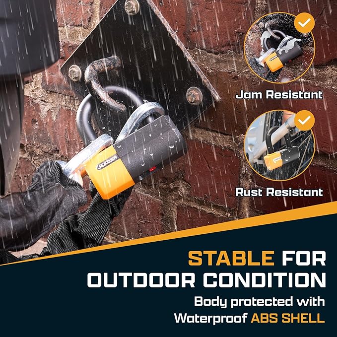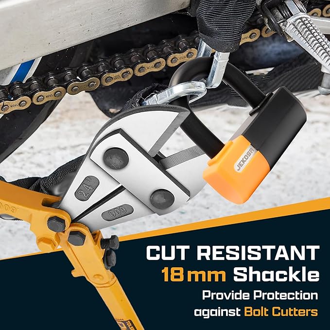 - 18 MM HARDENED STEEL SHACKLE – Extra-thick 18 mm shackle stands up to bolt cutters, prying, and hammer hits for serious protection where it counts.