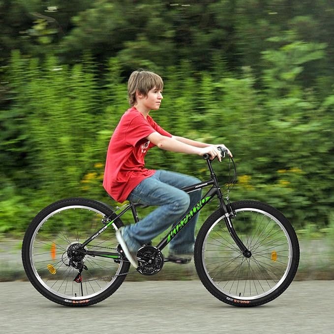 - Entry-Level Performance: Tailored for newcomers to the world of mountain biking, making a balance between affordability and functionality. Durable and stable steel mountain bike frame makes stable and safe riding.