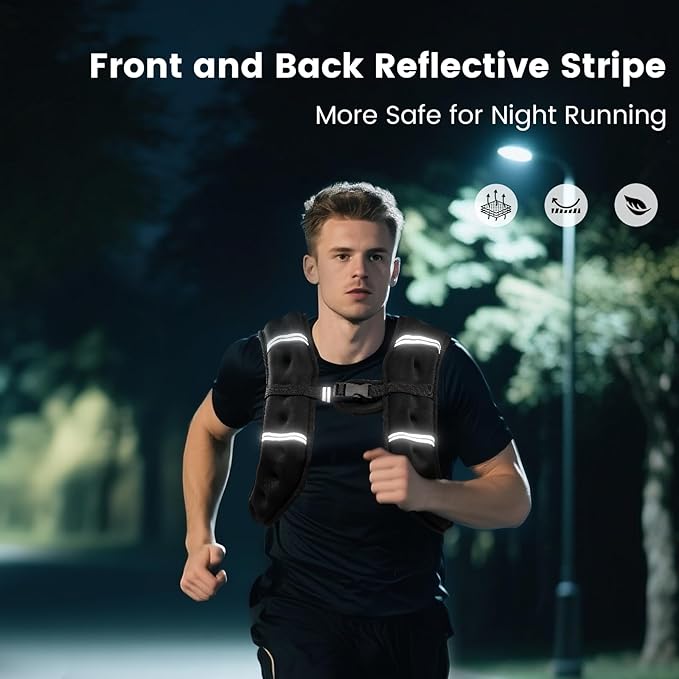 - ♥【Comfortable and Durable】This ergonomic design of 6lb/8lb/12lb/16lb/20Lb/25lbs iron sand weighted vest for women men ensures even weight distribution,which minimizes shoulder and neck fatigue,allowing you to focus on your workout and maximize your training efficiency. adjustable straps and buckles ensure a secure close fit for various bust sizes,while reflective stripes on both sides of the weighted vest enhance safety during nighttime running!