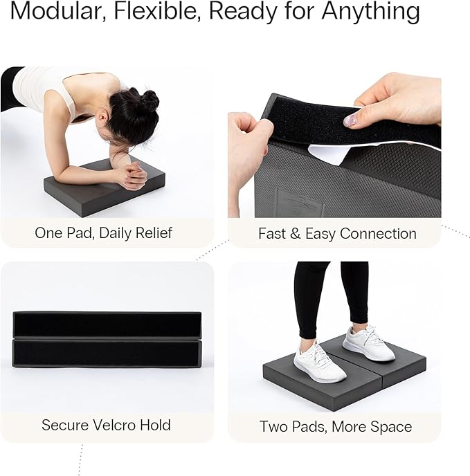 - Flexible Setup for Any Routine: Each pad measures 15.75" x 10" x 2.5"—ideal for single-leg balance, core stability, yoga support, and rehab drills. Use the two pads separately or side by side to create a 15.75" x 20" platform for squats, wide-stance moves, and standing poses.