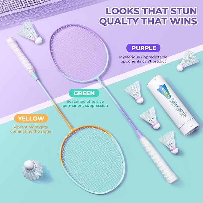 - Durable Aesthetics Rackets: HIRALIY badminton racquet are made from premium material for durability; Its eye-catching high-level color matching makes you stand out on the court. Lightweight yet sturdy, they offer the perfect balance of power, control and style